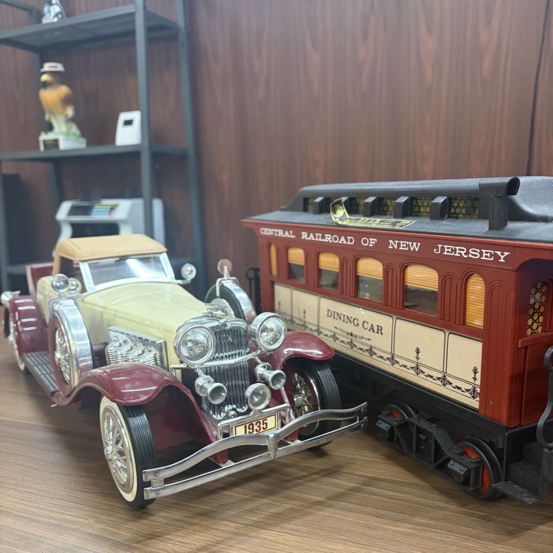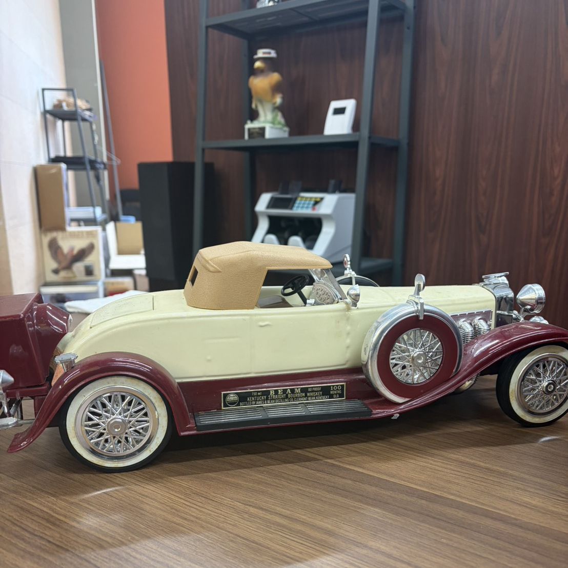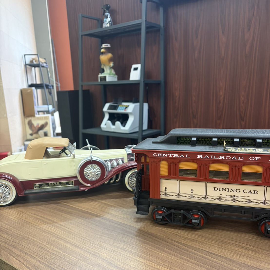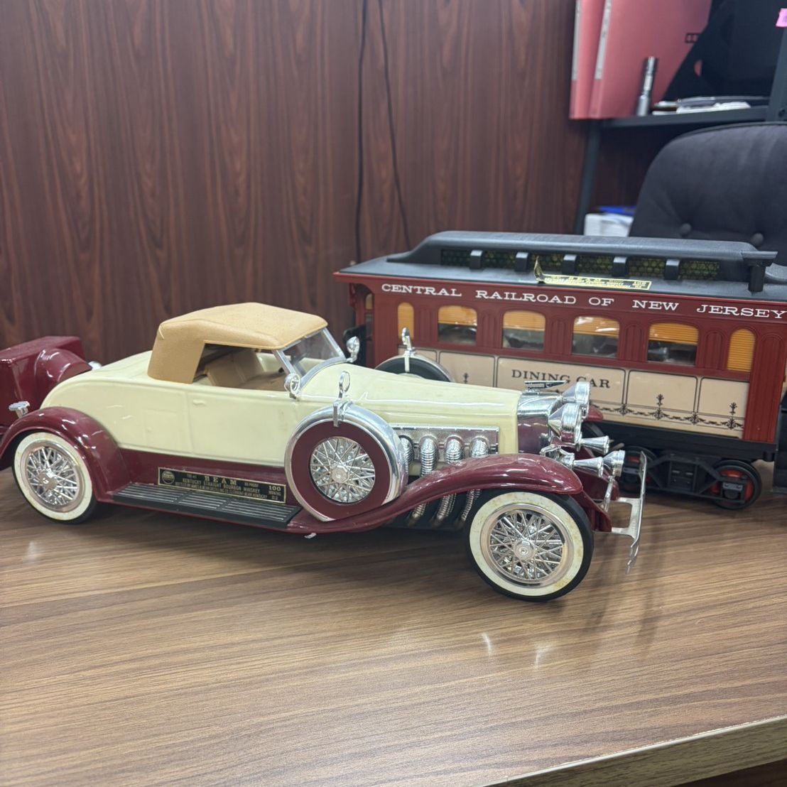 まるでパズルのようですがクラシックカーは後部の収納ボックス、鉄道の食堂車の部分は貨車の入り口部分に開くところがあって、そこからウイスキーを注ぐことが出来ます。