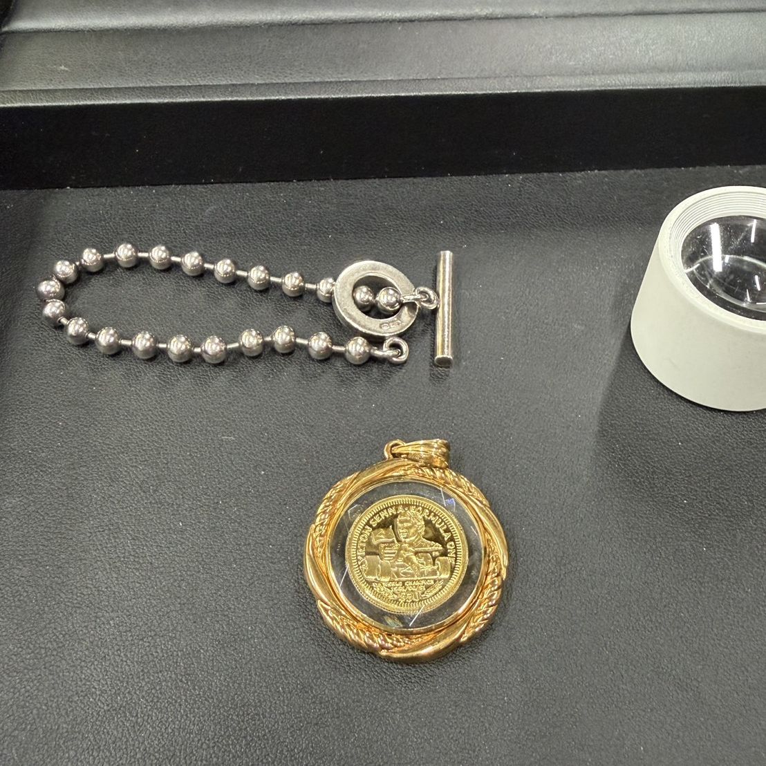 店頭にてGUCCI シルバービーズブレスレットとアイルトンセナ 50ドル金貨をお買取りさせて頂きました。