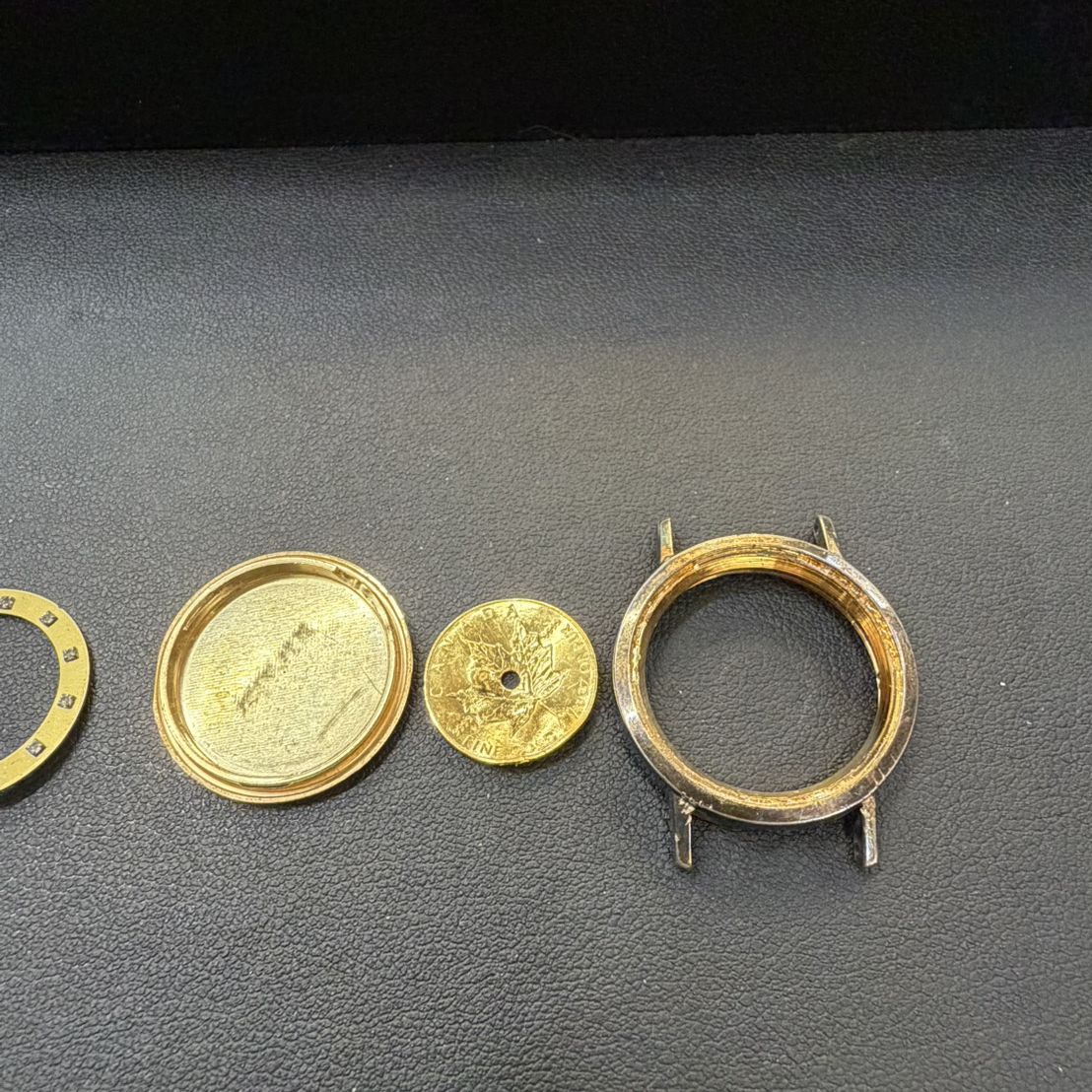 時計をバラしてみたらやはりコインが半分に削られてます。